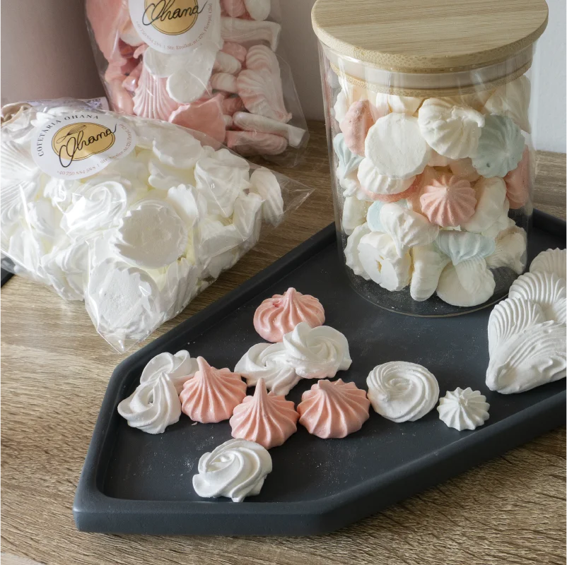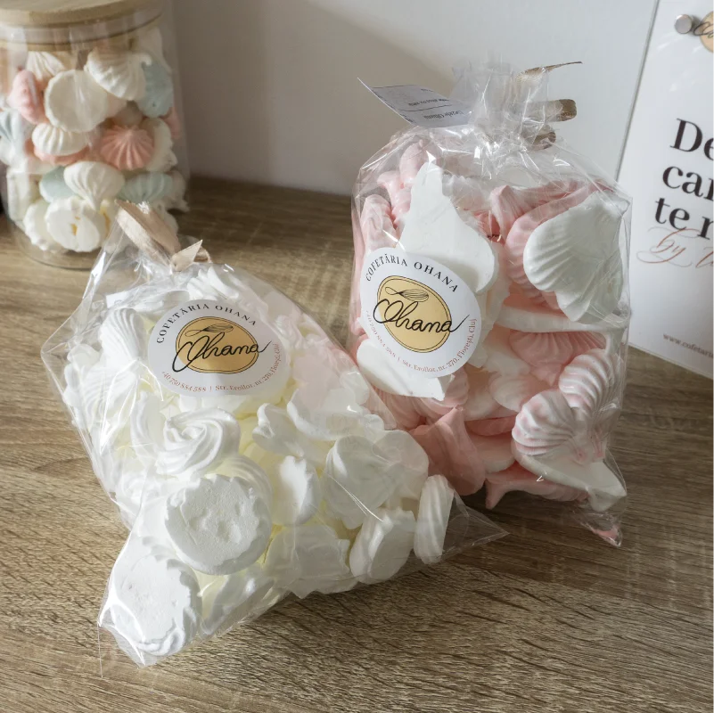 Delicate și crocante, Bezelele Ohana sunt micile bucurii dulci care aduc un strop de rafinament fiecărui moment. Realizate artizanal din ingrediente simple, dar alese cu grijă – albuș de ou și zahăr –, aceste bezele sunt dovada că adevărata magie se află în simplitate.