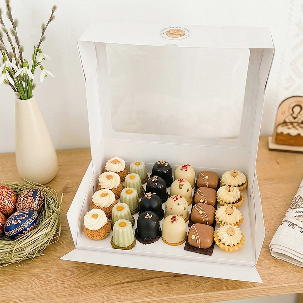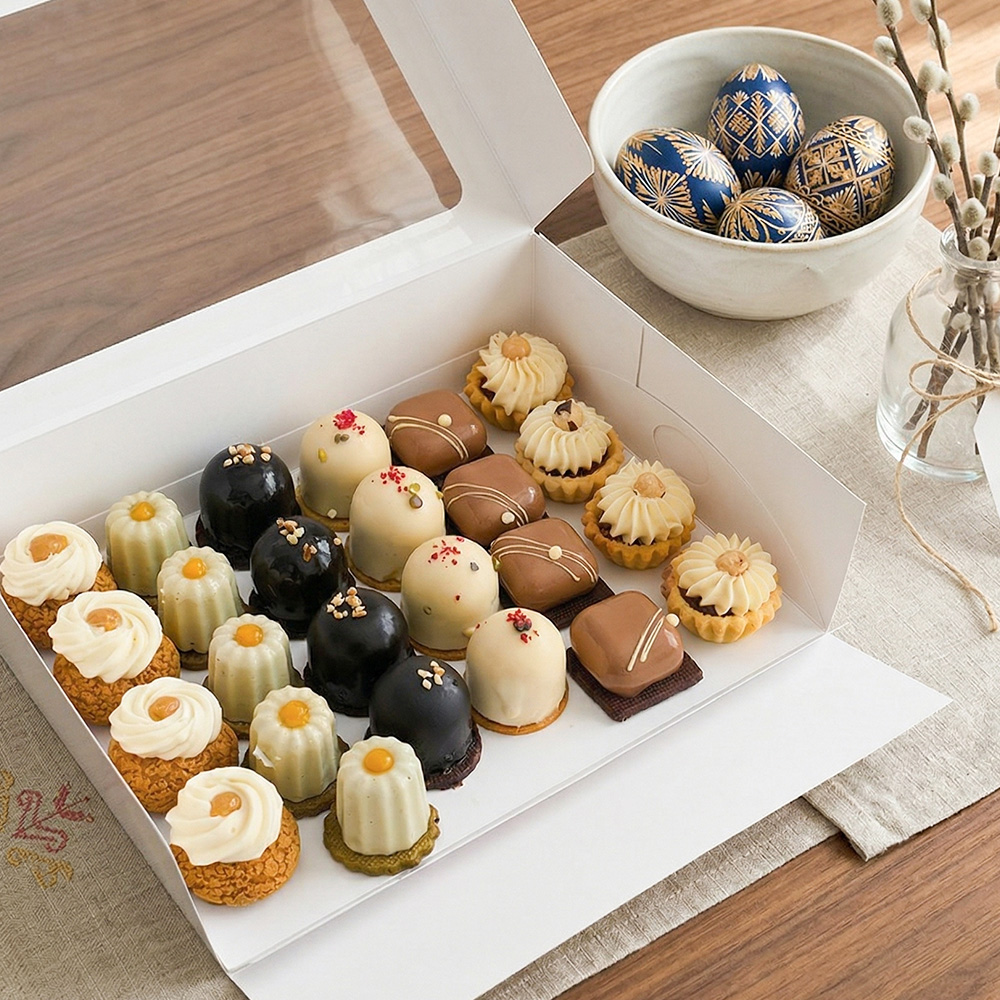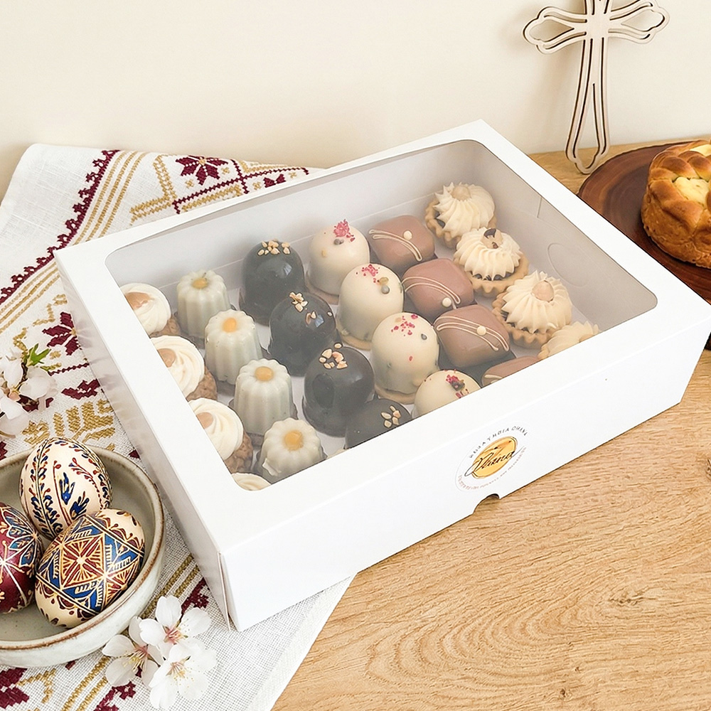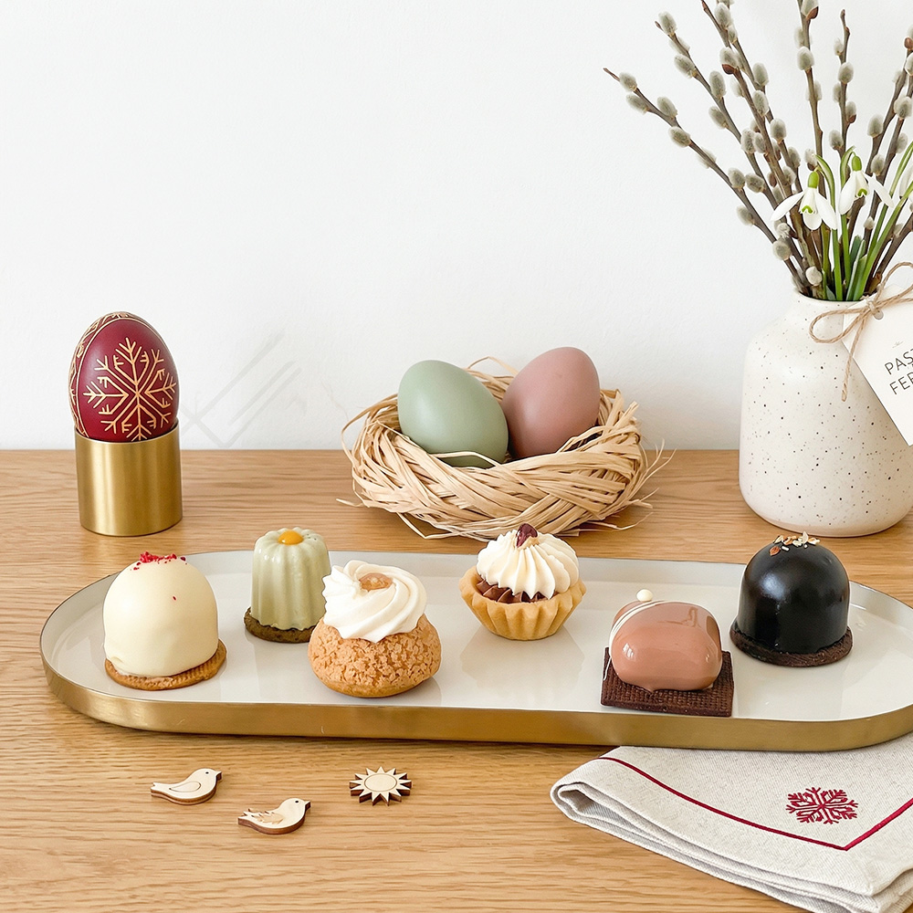 Selecție de mini deserturi artizanale, cu arome variate și rafinate. Ideală pentru masa de Paște sau cadou special.